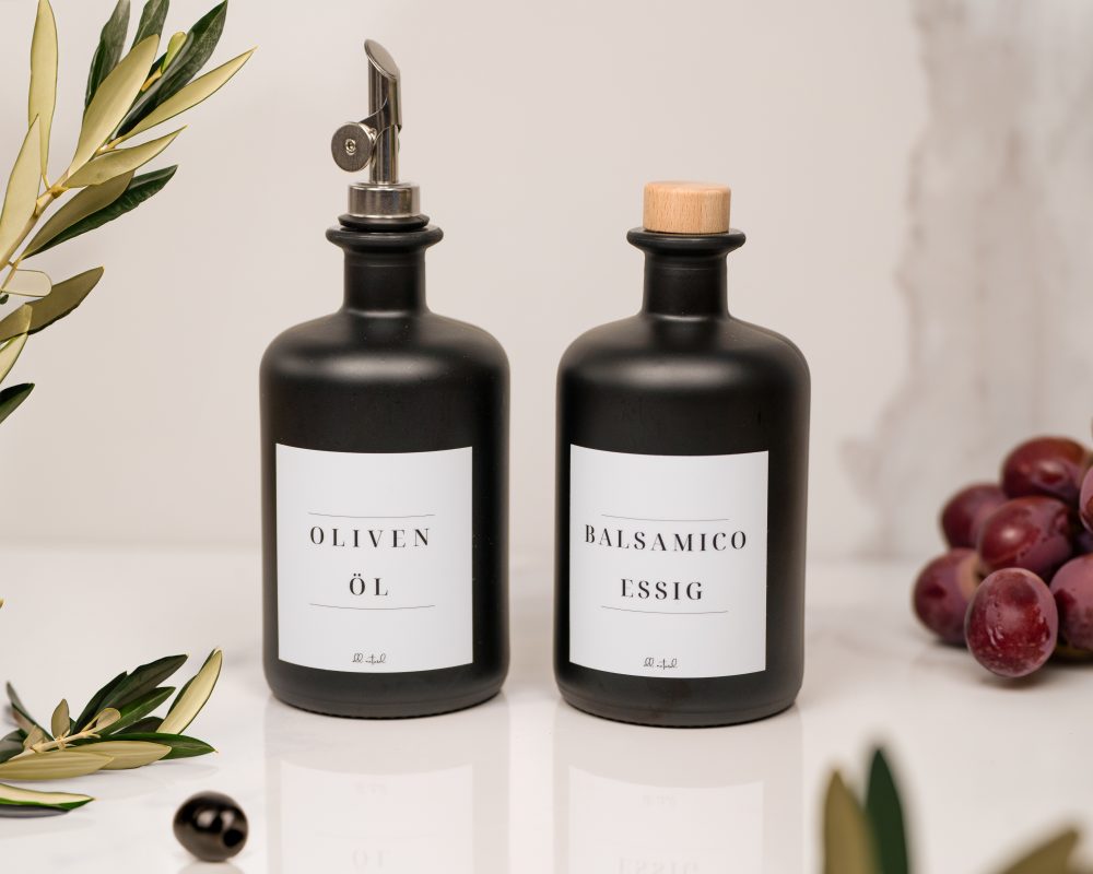 Ein stilvoller Blickfang für deine Küche – und ein echtes Highlight auf jedem gedeckten Tisch. Unsere hochwertigen 500 ml Apothekerflaschen bringen Olivenöl und Balsamicoessig nicht nur geschmacklich, sondern auch optisch zur Geltung. Das edle Glasdesign, kombiniert mit wasserfestem Etikett und eleganten Ausgießern, macht jede Flasche zum Lieblingsstück.