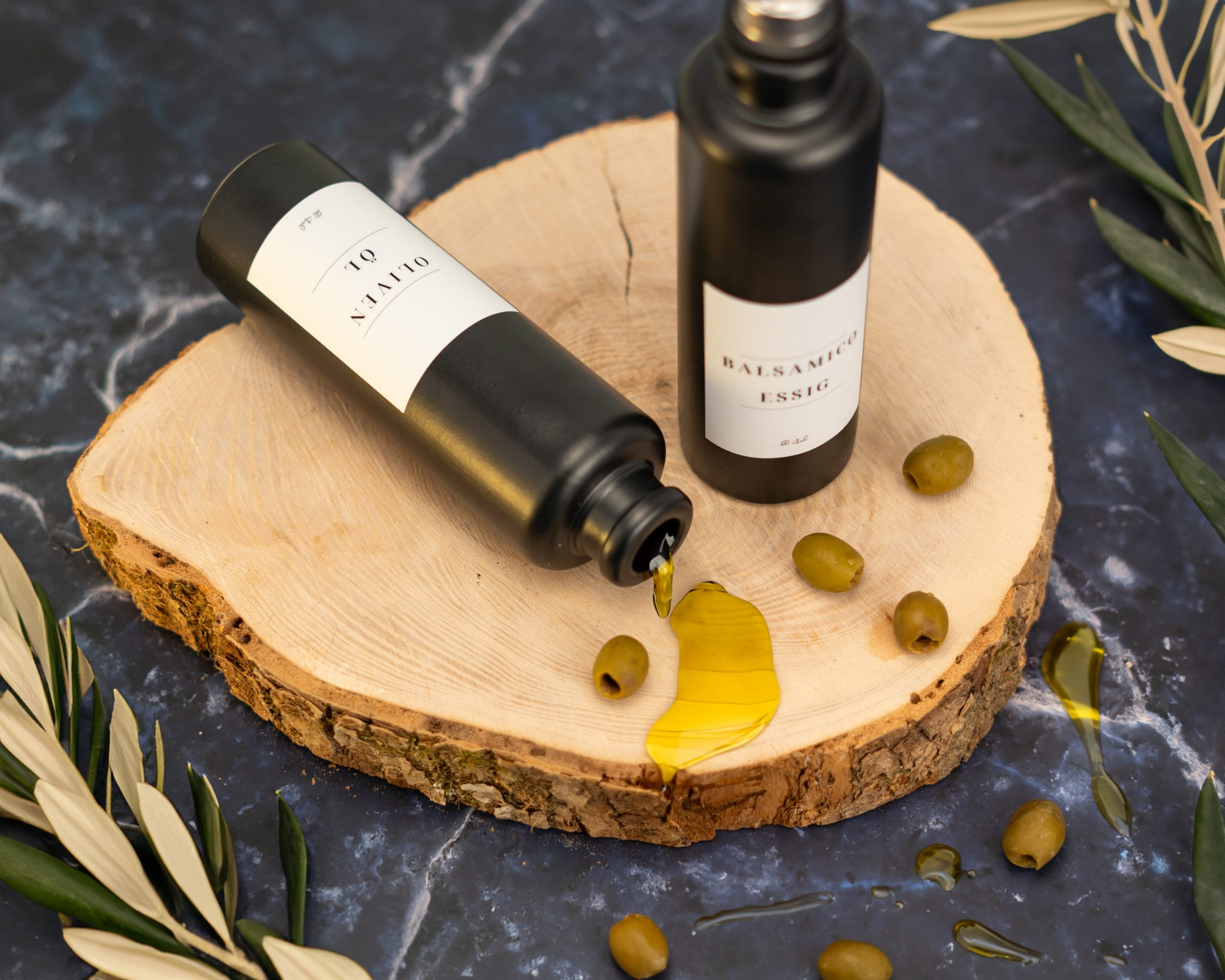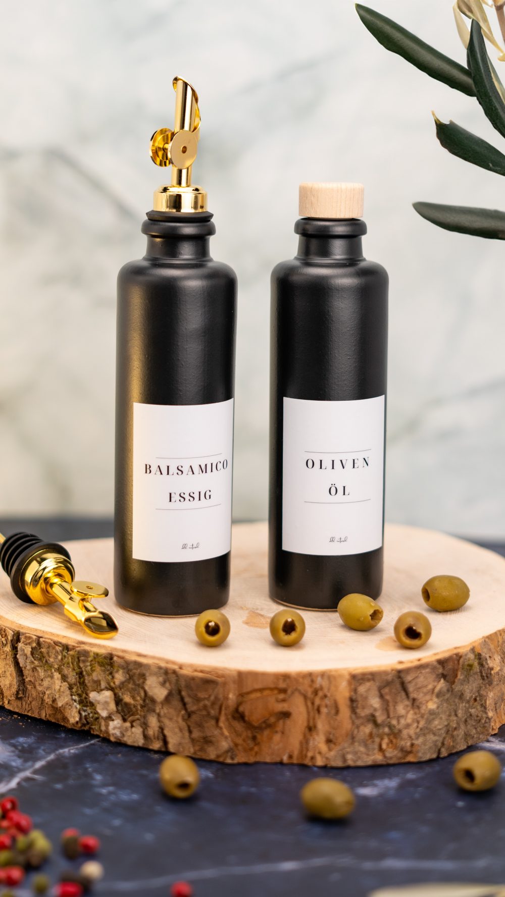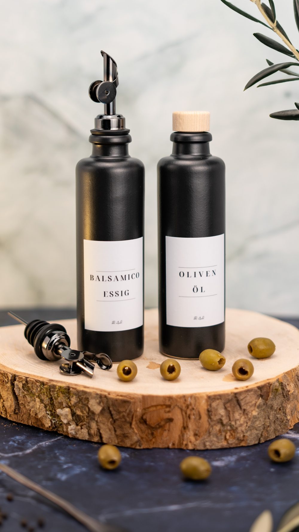 Ideal für hochwertiges Olivenöl oder feinen Balsamico. Auch perfekt zur Aufbewahrung von hausgemachten Dressings oder zum stilvollen Servieren bei Tisch.